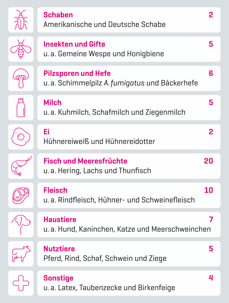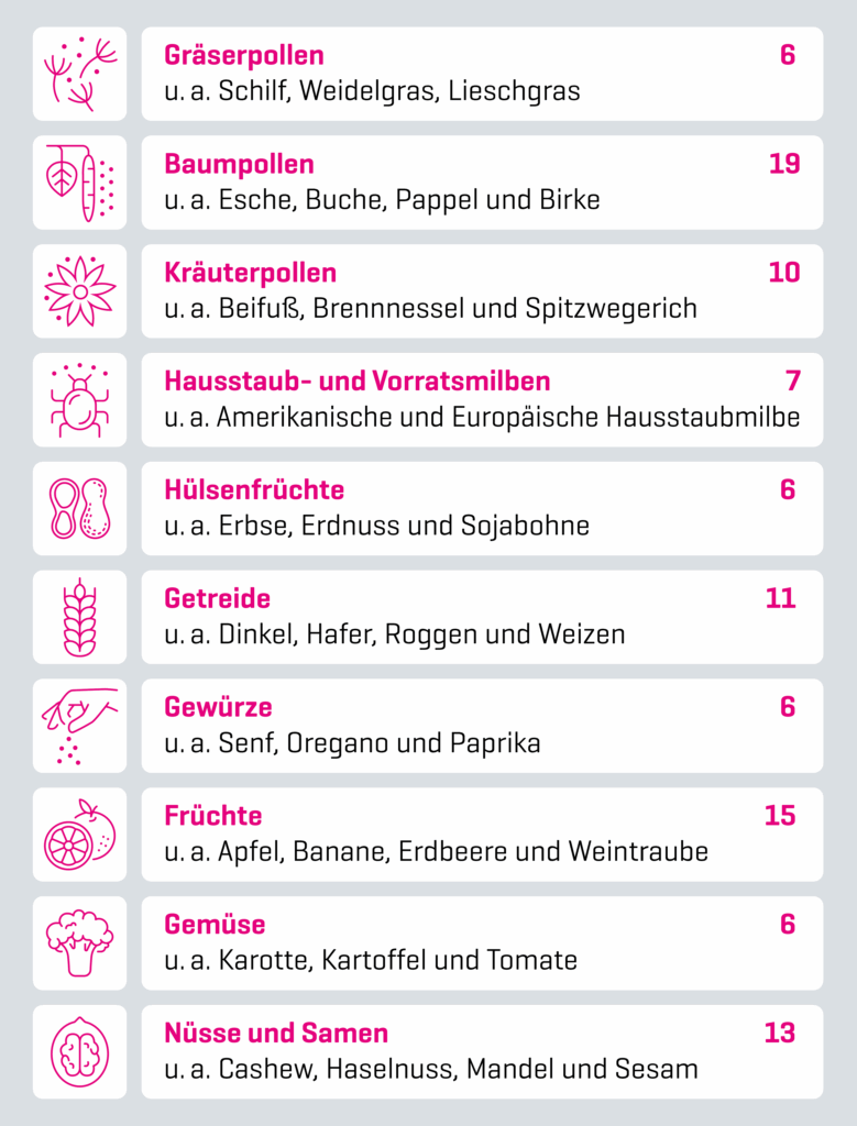295 potentielle Allergieauslöser - 165 verschiedene Allergenquellen